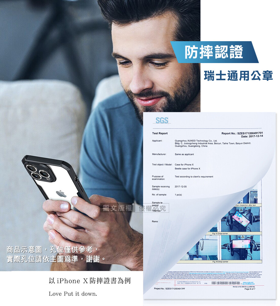 包裝內容物:XUNDD軍事防摔手機殼(含玻璃貼) x 1