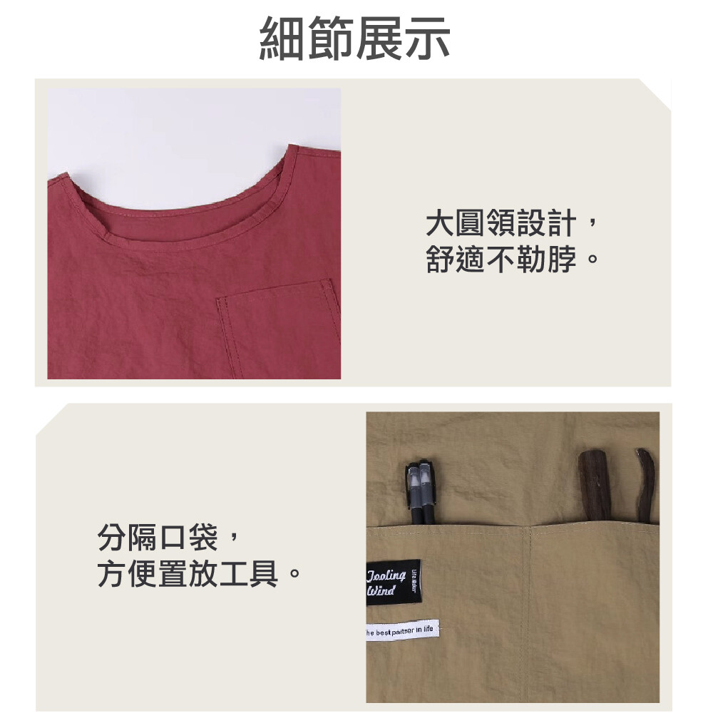 附分隔口袋,方便置放工具
