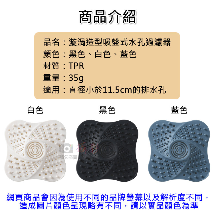 漩渦造型吸盤式水孔過濾器-黑色漩渦造型吸盤式水孔過濾器-白色漩渦造型吸盤式水孔過濾器-藍色