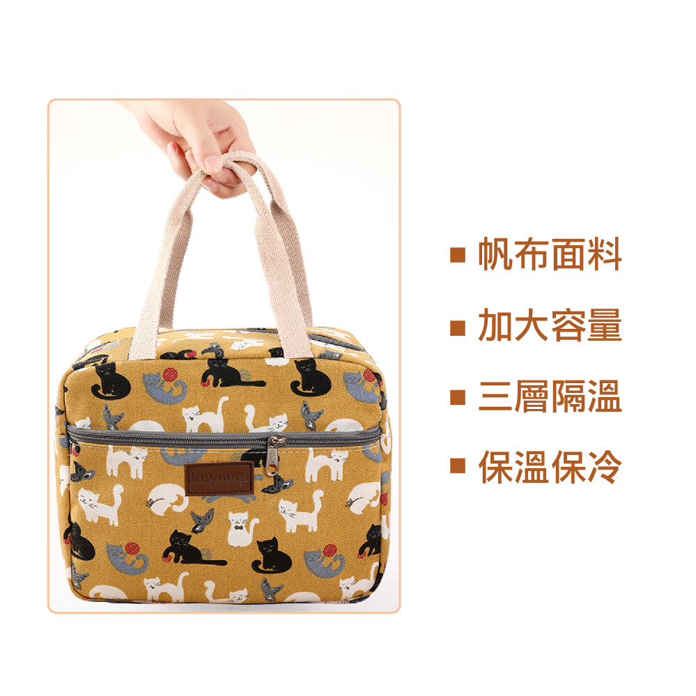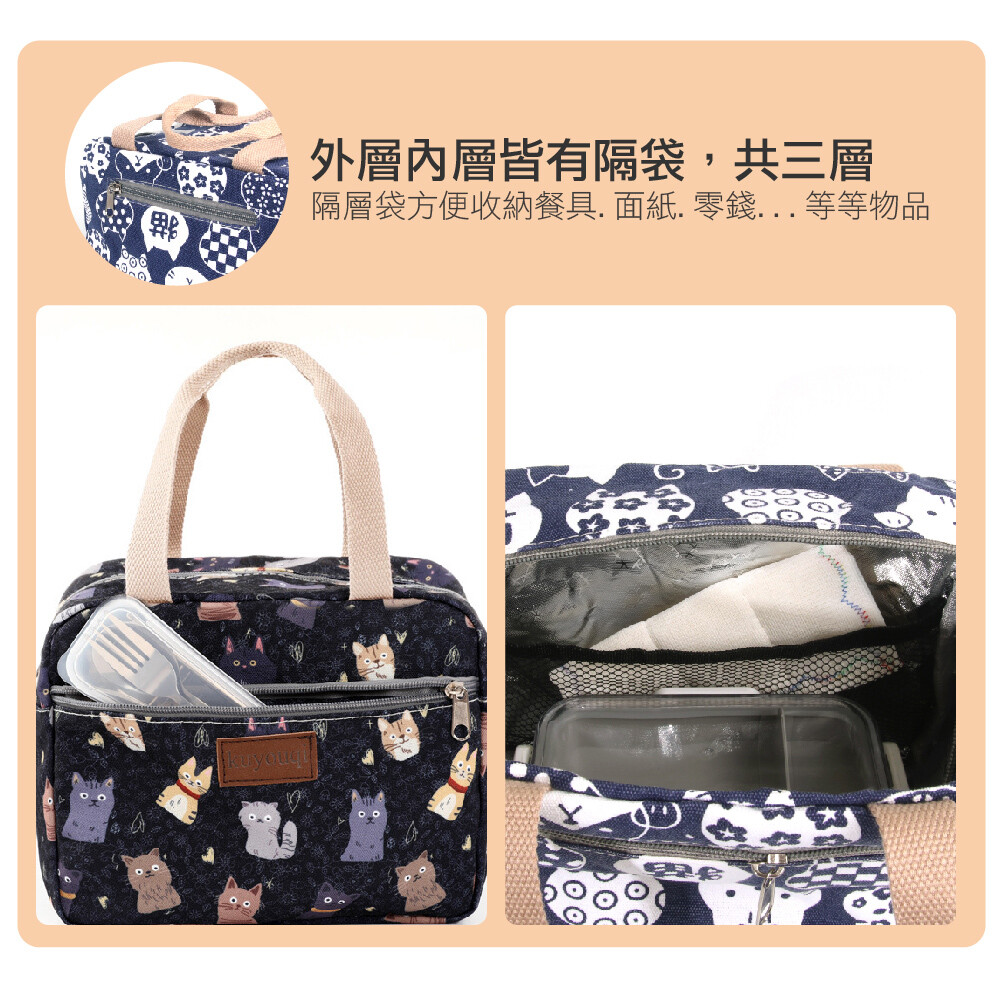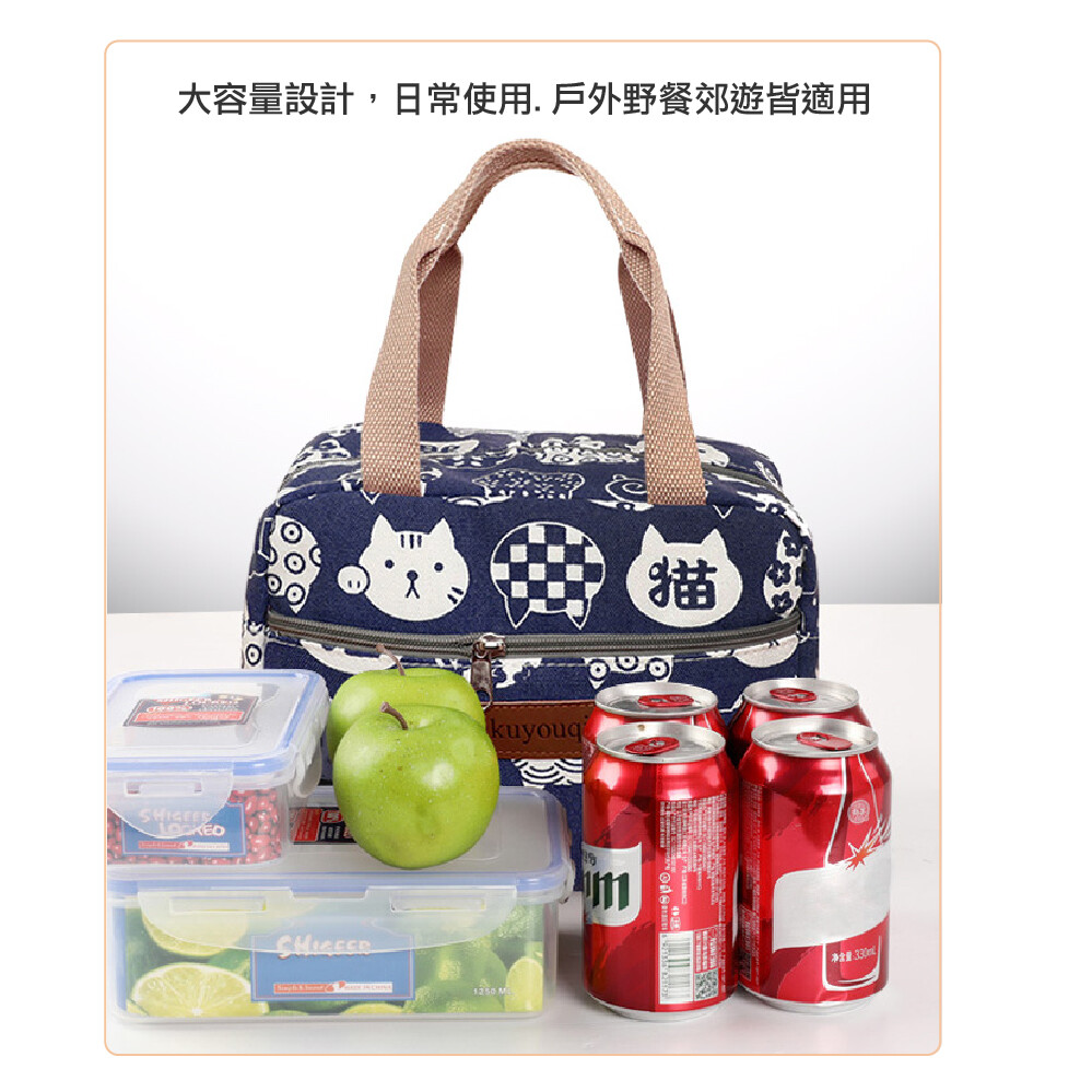 【AXIS 艾克思】療癒系貓兔帆布保溫便當袋.手提袋