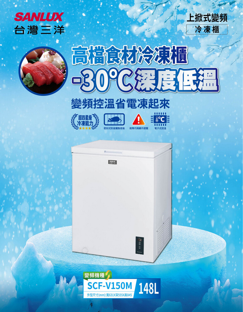 SANLUX台灣三洋148公升上掀式變頻冷凍櫃 SCF-V150M~含拆箱定位+舊機回收