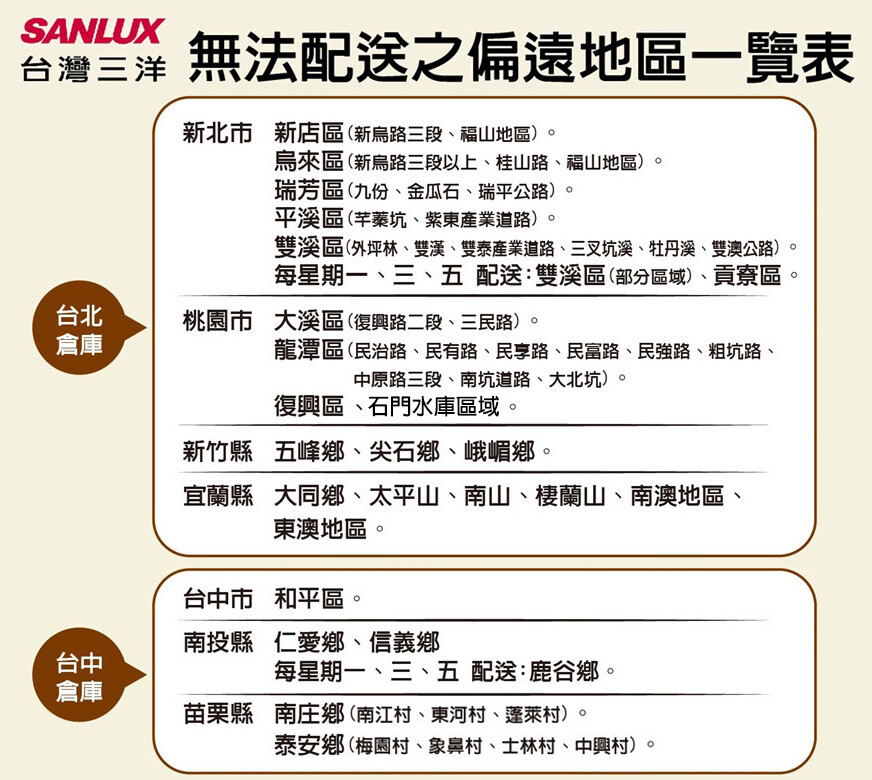 ◎如欲家電旺季或任何配送異常狀況會盡快告知,配送時間則以物流聯絡約定時間為準