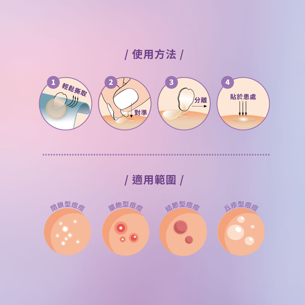 ◎痘痘貼表面之防水層具有防水及透氣效果,仍應避免直接與水分接觸