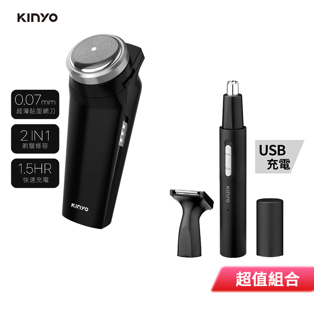 KINYO 二合一充插兩用單刀頭極簡俐落刮鬍刀+充電鼻毛修容組 KS-504+CL-618