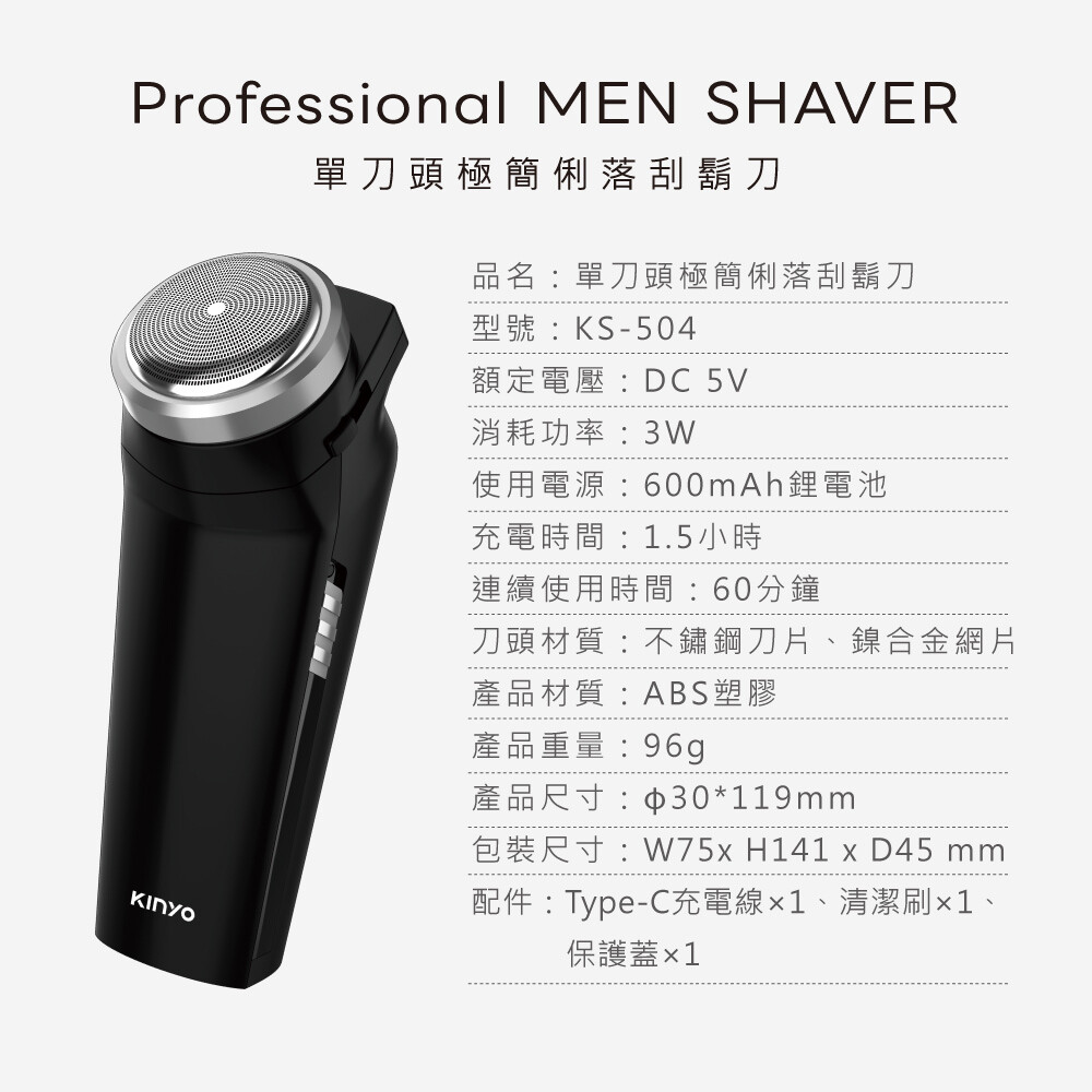 KINYO 二合一充插兩用單刀頭極簡俐落刮鬍刀 KS-504