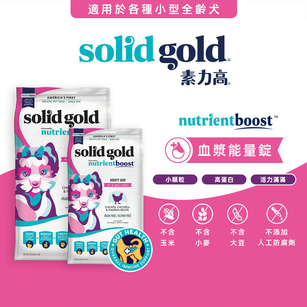 雞肉、雞肉粉、鷹嘴豆、豌豆、豌豆蛋白、雞脂肪(混合維生素E)、南瓜、地瓜、乾燥雞蛋、海魚肉粉、動物血漿、研磨亞麻籽、噴霧乾燥的動物血球、天然香料、磷酸氫鈣、胡蘿蔔、鹽、鮭魚肉油(混合維生素E)、氯化鉀、藍莓、蔓越莓、維生素(E、C、B3、B5、B2、B6、B1、A、B12、D3、生物素、葉酸)、氯化膽鹼、礦物質(硫酸鋅、硫酸亞鐵、硫酸銅、硫酸錳、蛋白鋅、蛋白錳、蛋白銅、亞硒酸鈉、碘酸鈣)、乾燥菊苣根、 DL-蛋胺酸、牛磺酸、迷迭香萃取物、乾燥凝結芽孢桿菌發酵產物(益生菌&後生元)。