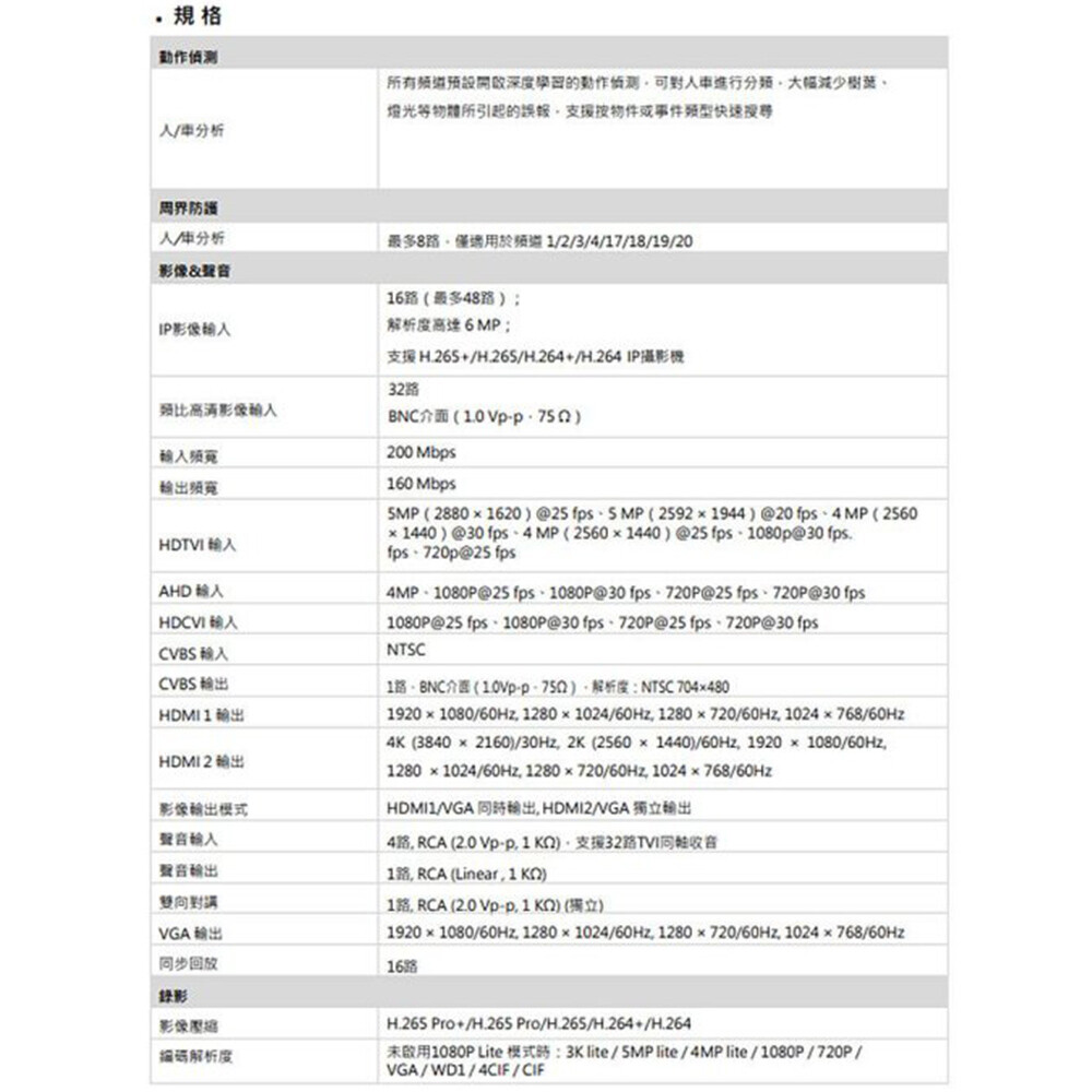 -最高支援:TVI 5MP、AHD 4MP、CVI 1080P、IP 6MP。