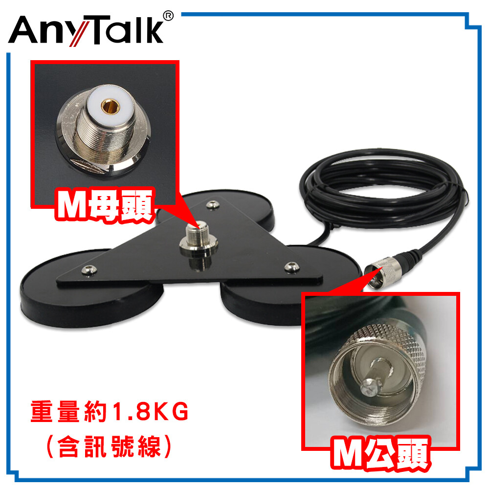 【AnyTalk】強力三角吸盤座 + 4米訊號線 吸盤天線座 三角吸盤 磁吸天線座 吸盤座