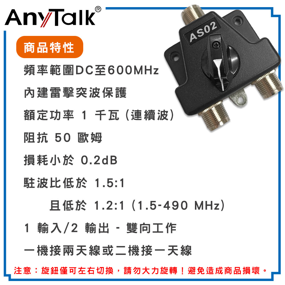 【AnyTalk】AS02 天線轉換器 無線電 同軸切換器 M頭 一對二切 低損失 一入二出