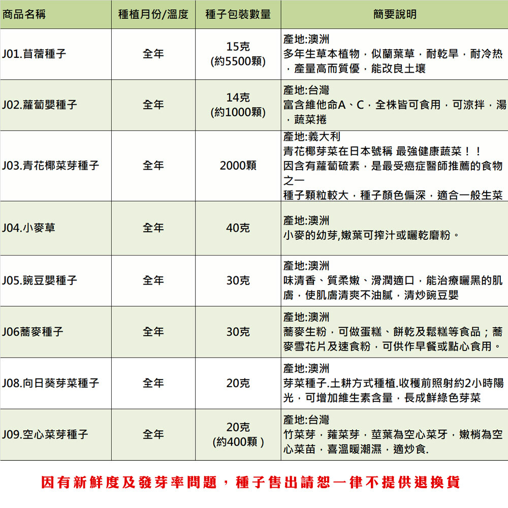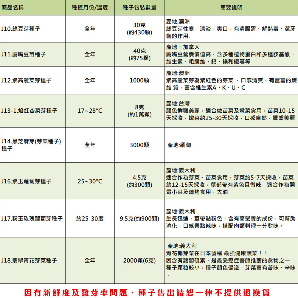 【種子因新鮮度問題,售出一律不提供退換貨】