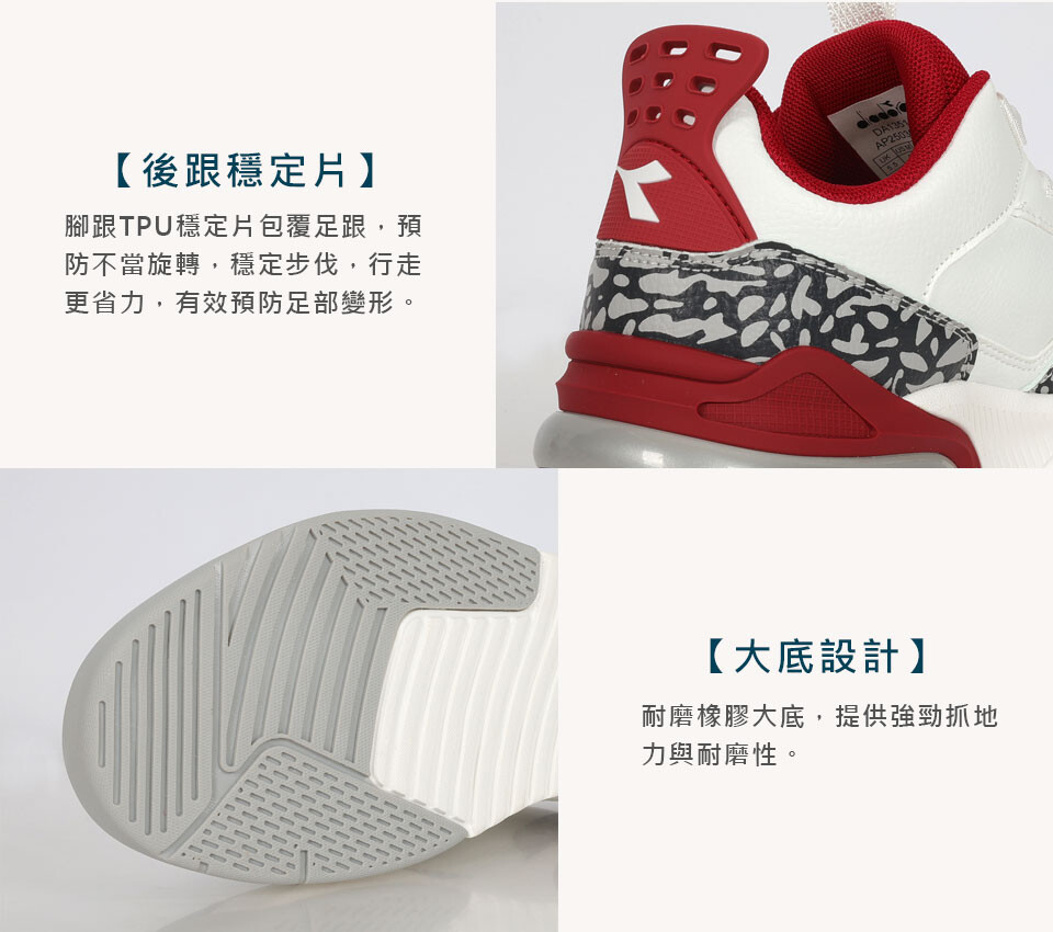 DIADORA 男女大童陸戰隊轉扣籃球鞋--超寬楦 旋轉扣 運動 童鞋 白酒紅灰黑