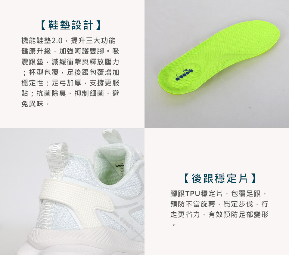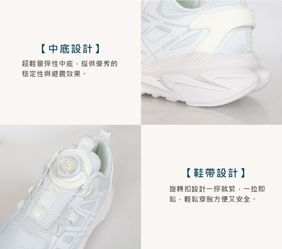 DIADORA 男女大童超音速輕量轉扣慢跑鞋--超寬楦 旋轉扣 運動 童鞋 白