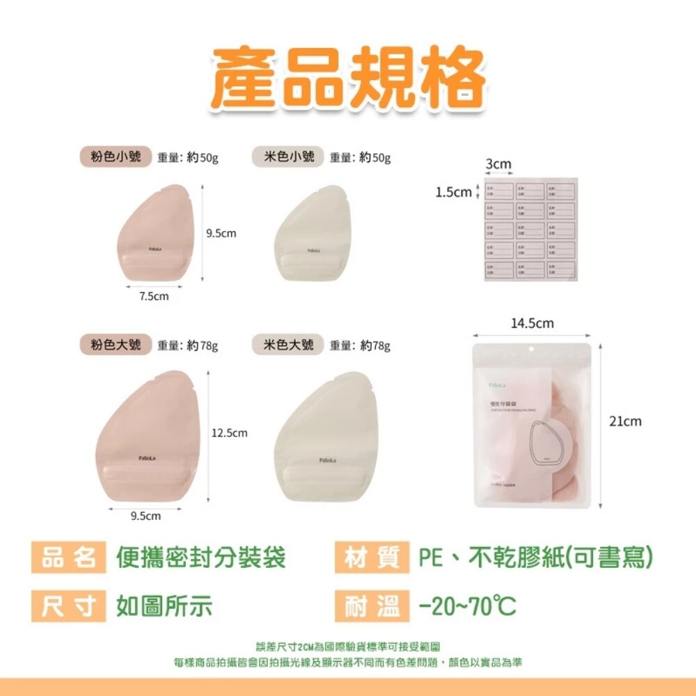 FaSoLa 旅行用便攜密封分裝袋附貼紙組