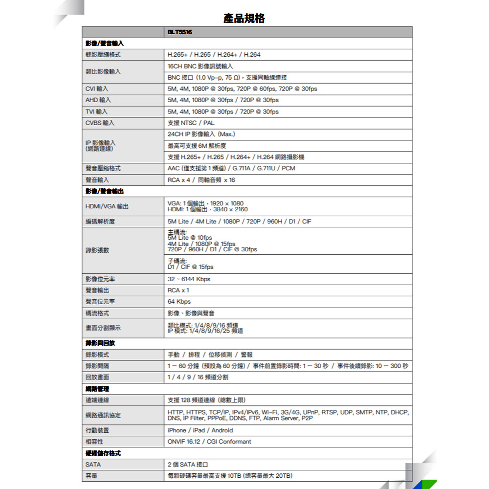 -最高可支援 6/12/24 頻道 6M 網路攝影機輸入