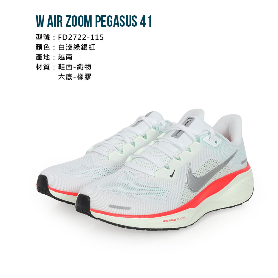 NIKE AIR ZOOM PEGASUS 41 男緩震慢跑運動鞋-路跑 白淺綠銀紅