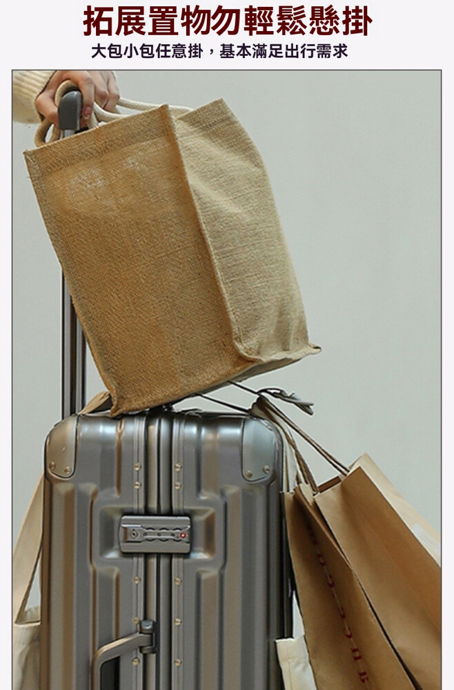 扣帶長度約 30 公分,剛好穿過行李拉桿手把,不再單手扛包,也能一口氣拉兩件裝備。