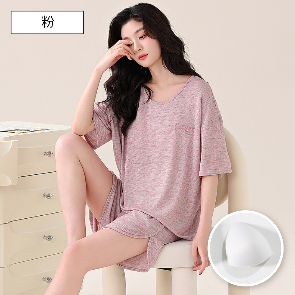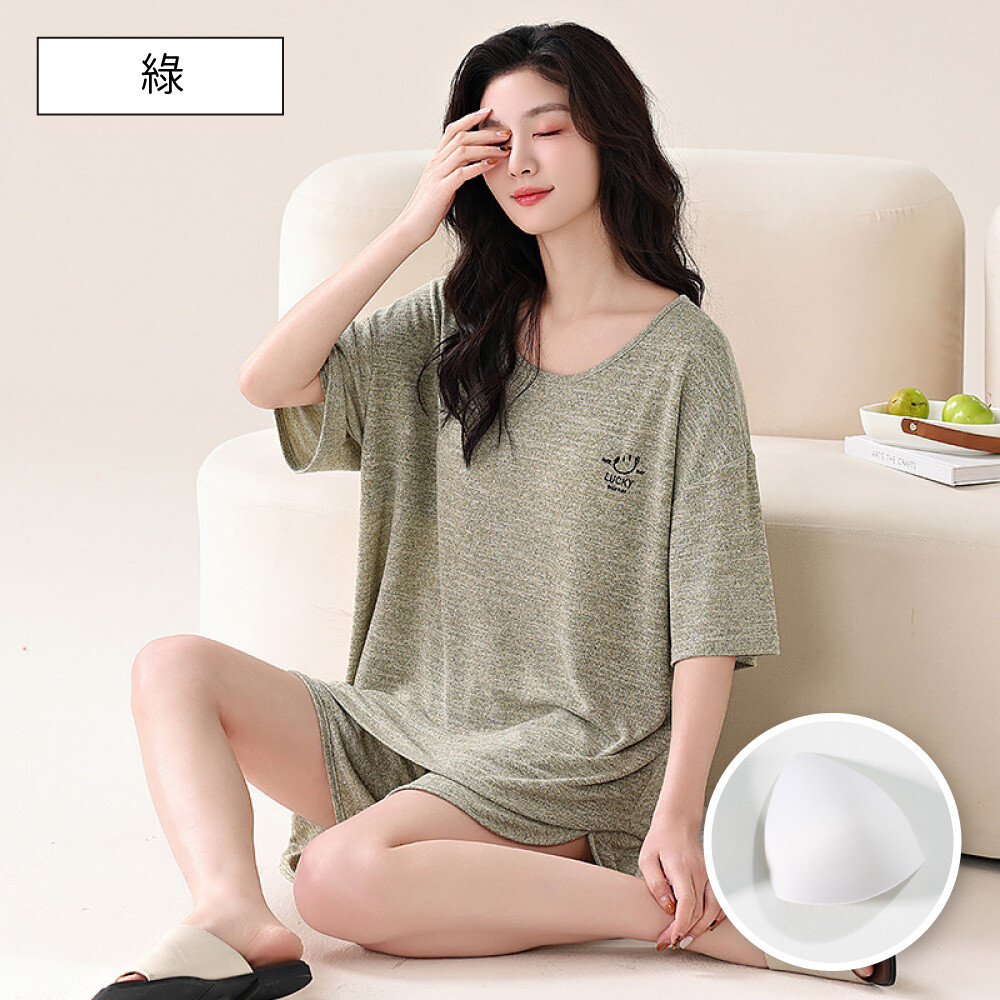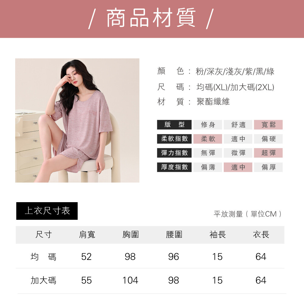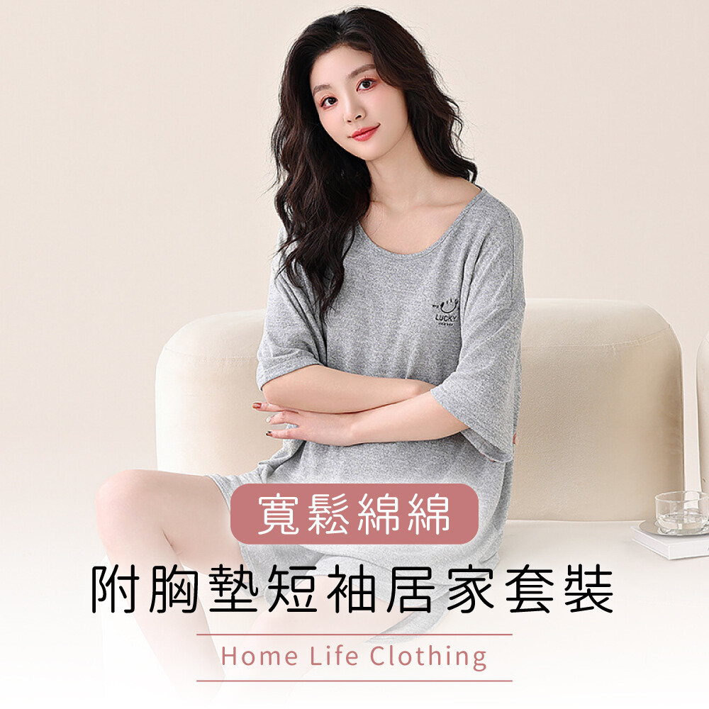 ★品名 : 氣質微光短袖附胸墊居家套裝