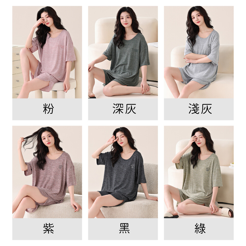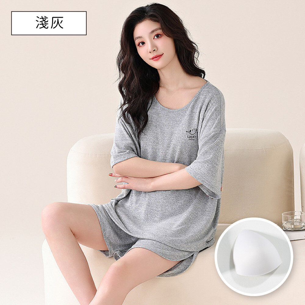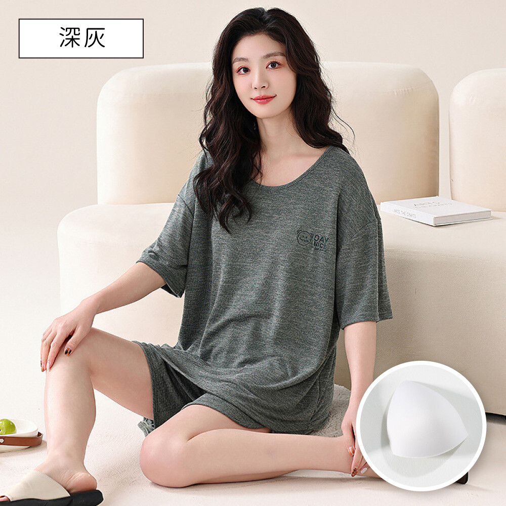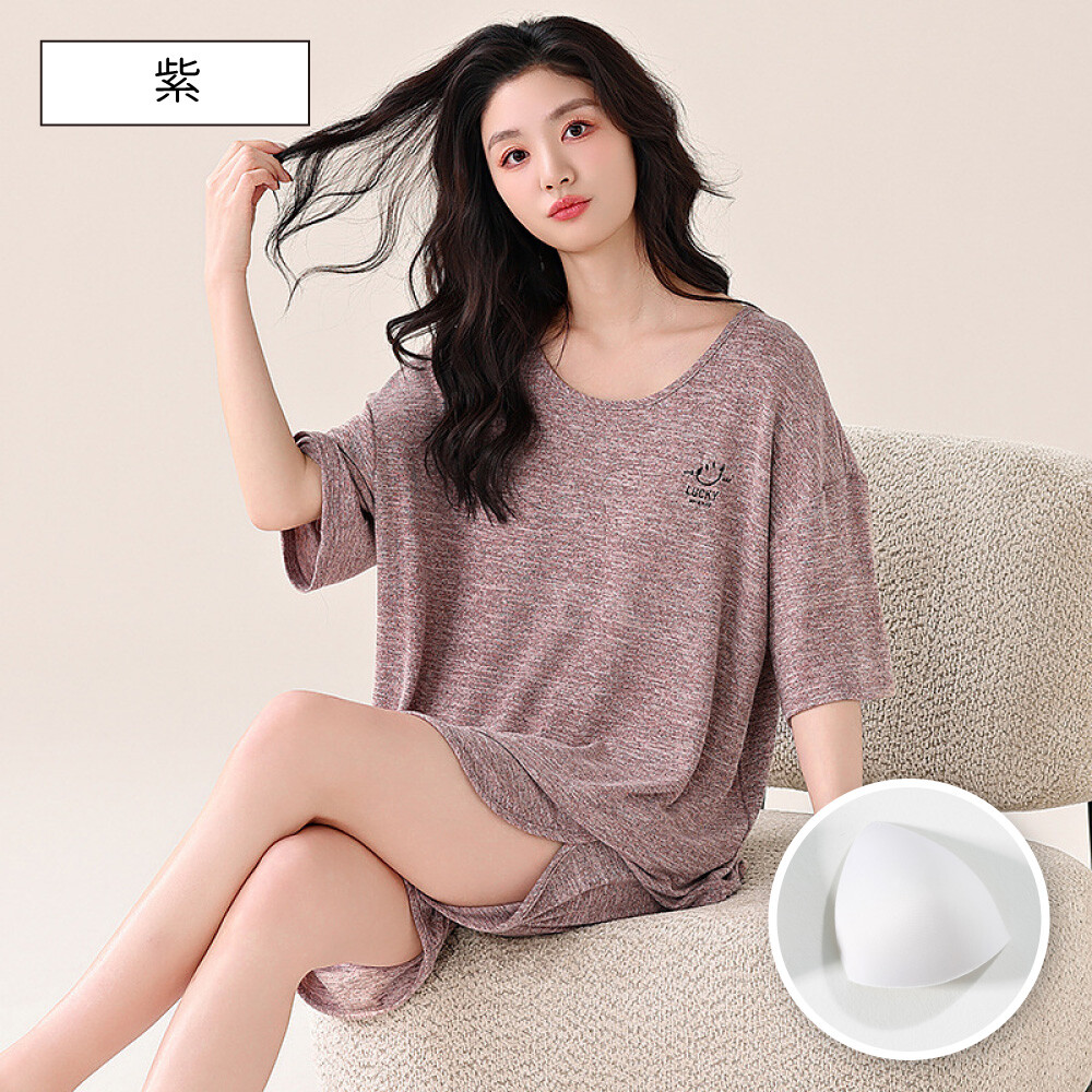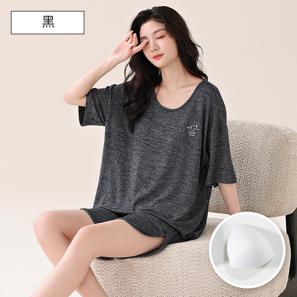 ★品名 : 氣質微光短袖附胸墊居家套裝
