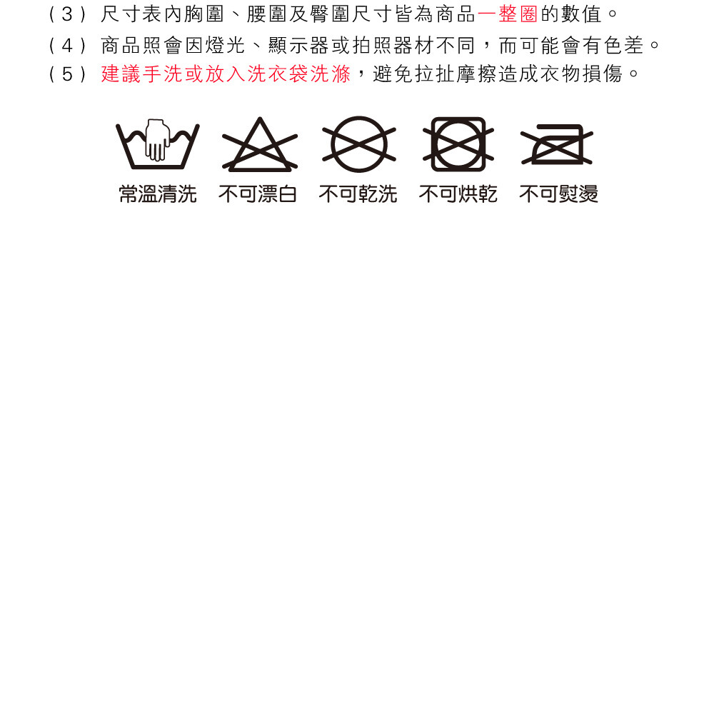 ●商品第一次穿戴前,深淺色請分開或單獨洗滌。