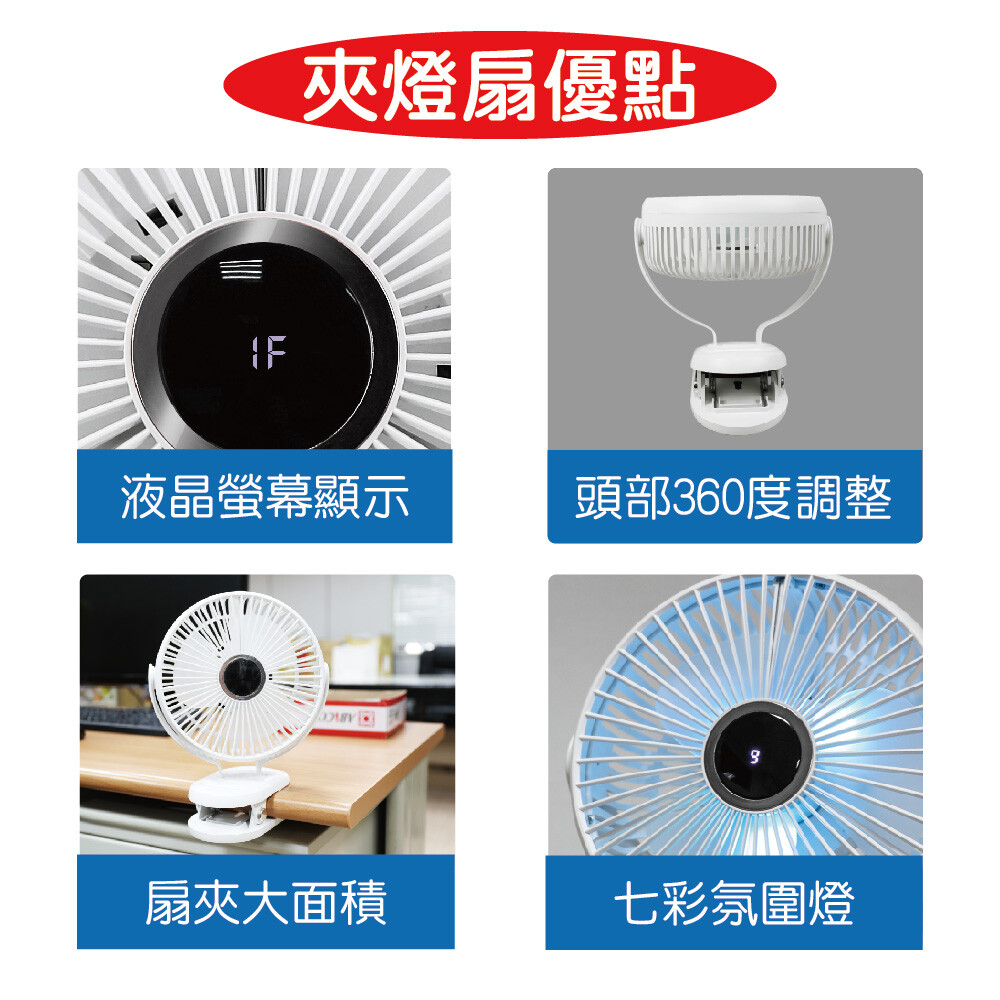勳風 8吋三合一USB行動桌夾壁掛燈扇 HFB-S0007
