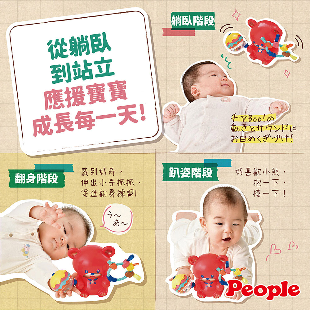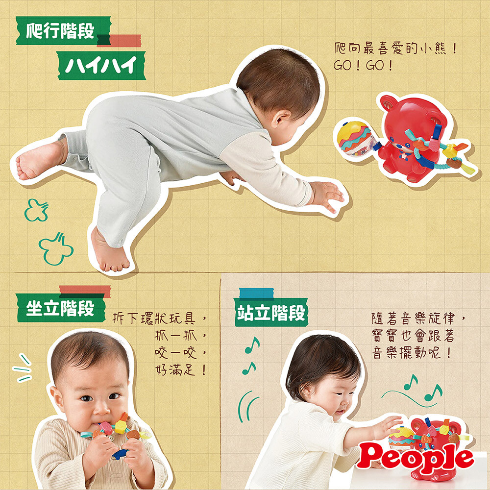 加上手中玩具會移動,深深吸引寶寶目光!(小熊尺寸:約寬17*高13*深10cm)