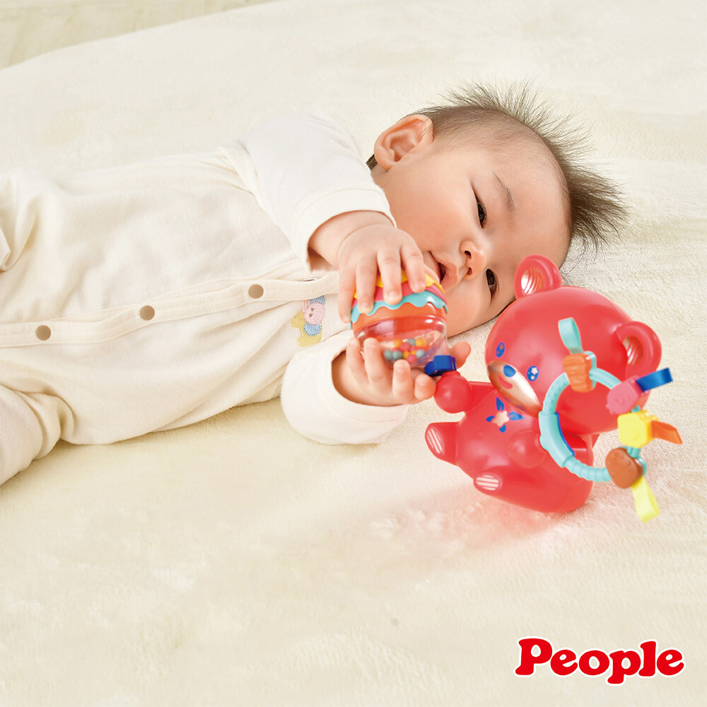 輕輕一撥就會旋轉,搖一搖,珠子會發出沙啦沙啦聲,也能放地面滾動玩耍喔!