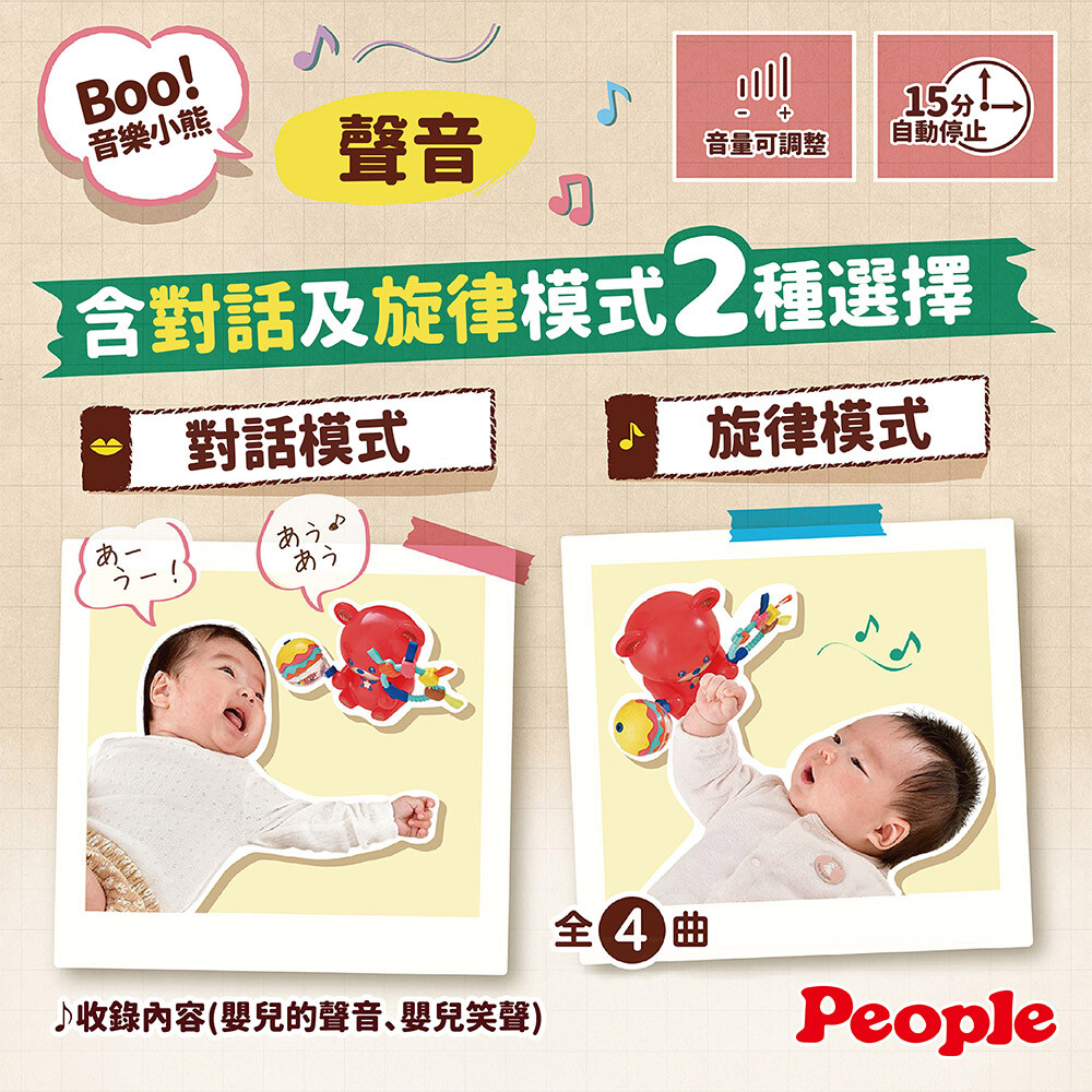 1.對話模式:收錄了實際的嬰兒聲及笑聲,寶寶聽得好專注呢! 有如和小熊在對話一般?!