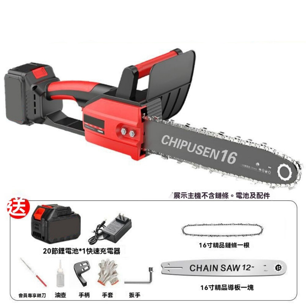 16寸鋰電大功率電鏈鋸 多功能園林伐木鋸 鋰電工具 戶外家用手持鋸 無刷軍刀鋸 電鋸 20節電池