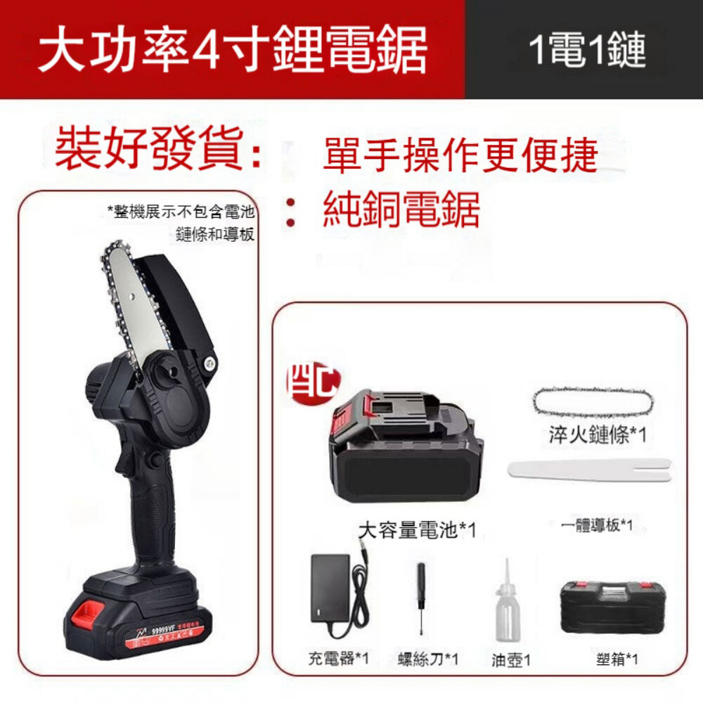 4寸無刷電鋸 充電式鋰電鋸 電鏈鋸 戶外便攜式單手鋸 輕量化伐木鋸 軍刀鋸 純銅電機