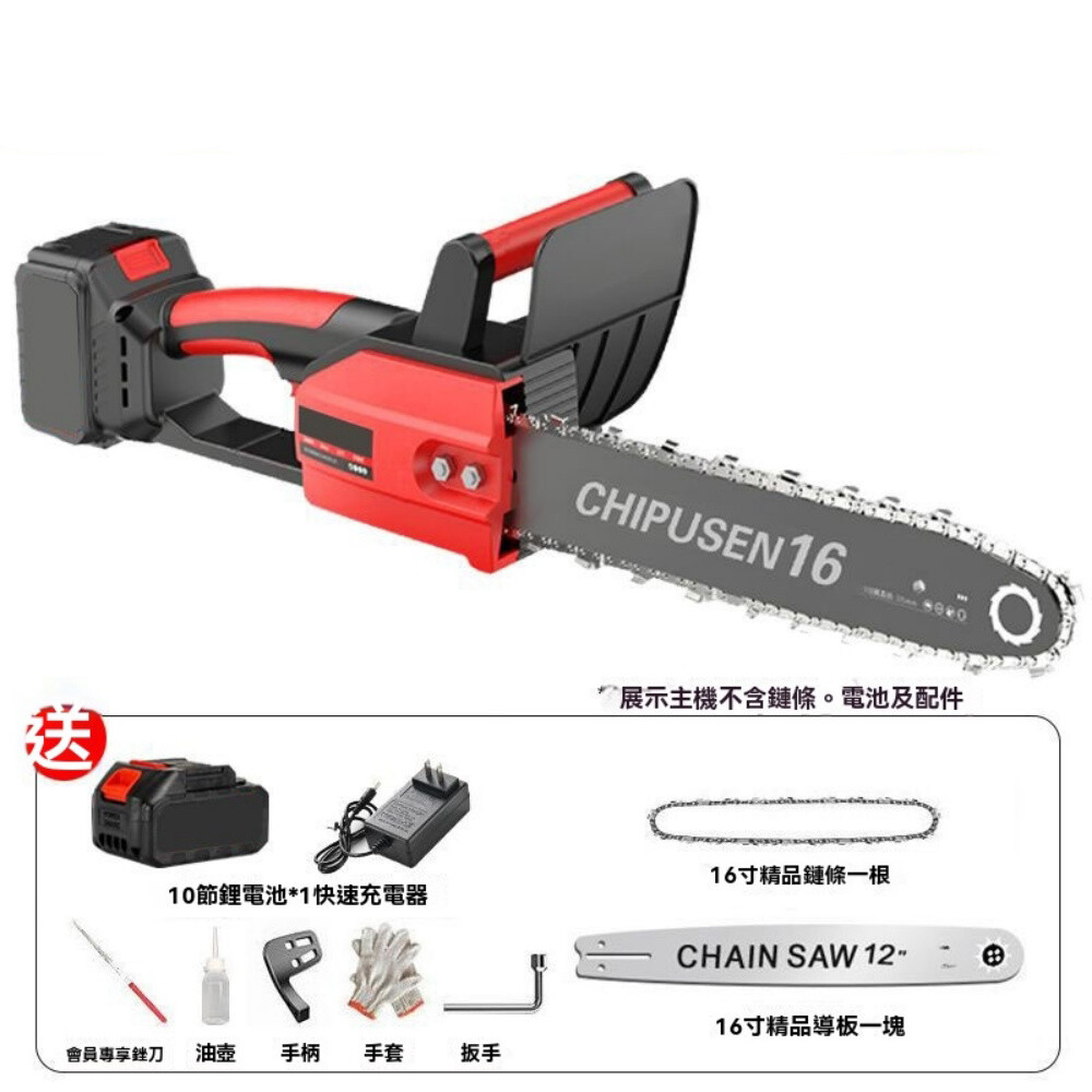 16寸尊享款鋰電鋸 大功率電鏈鋸 伐木鋸 10節電池 鏈鋸機 長續航 無刷電機 電動鋸 軍刀鋸