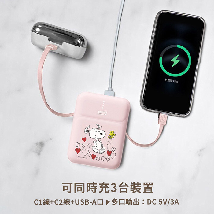 多口輸出:Type-C1線+Type-C2線+Type-A口:5V⎓3A