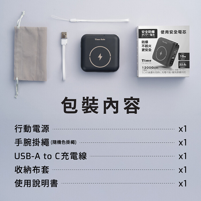 2.如AC輸入/Type-C1孔輸入:5V⎓3.0A,則Type-C1孔/Type-A孔/Type-C線/Lightning線+無線充:5V⎓1.5A(Total)+5W(12.5W max)