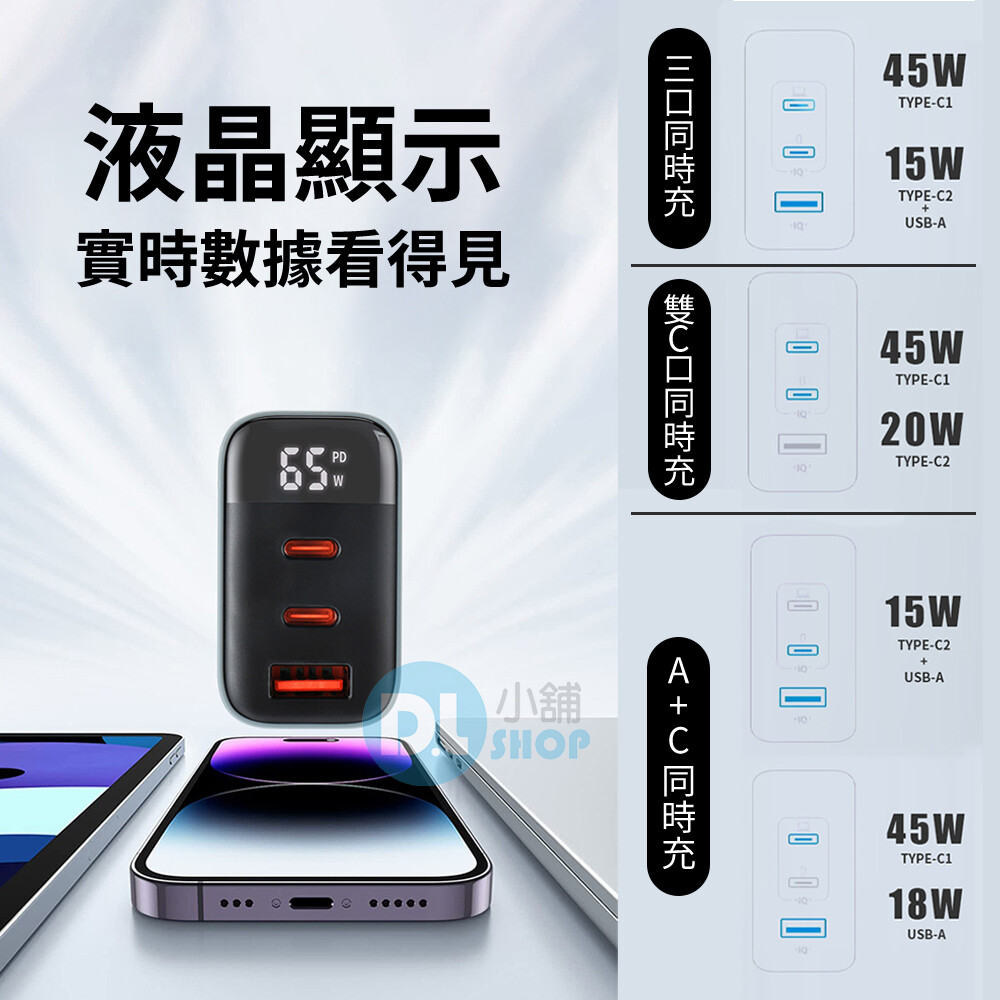 ✅ 液晶顯示實時數據看得見,三口同時充、雙C同時充、A+C同時充。