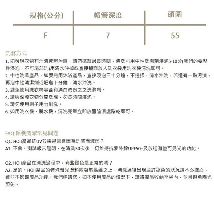 – 規格(公分):帽簷深度7 / 頭圍55