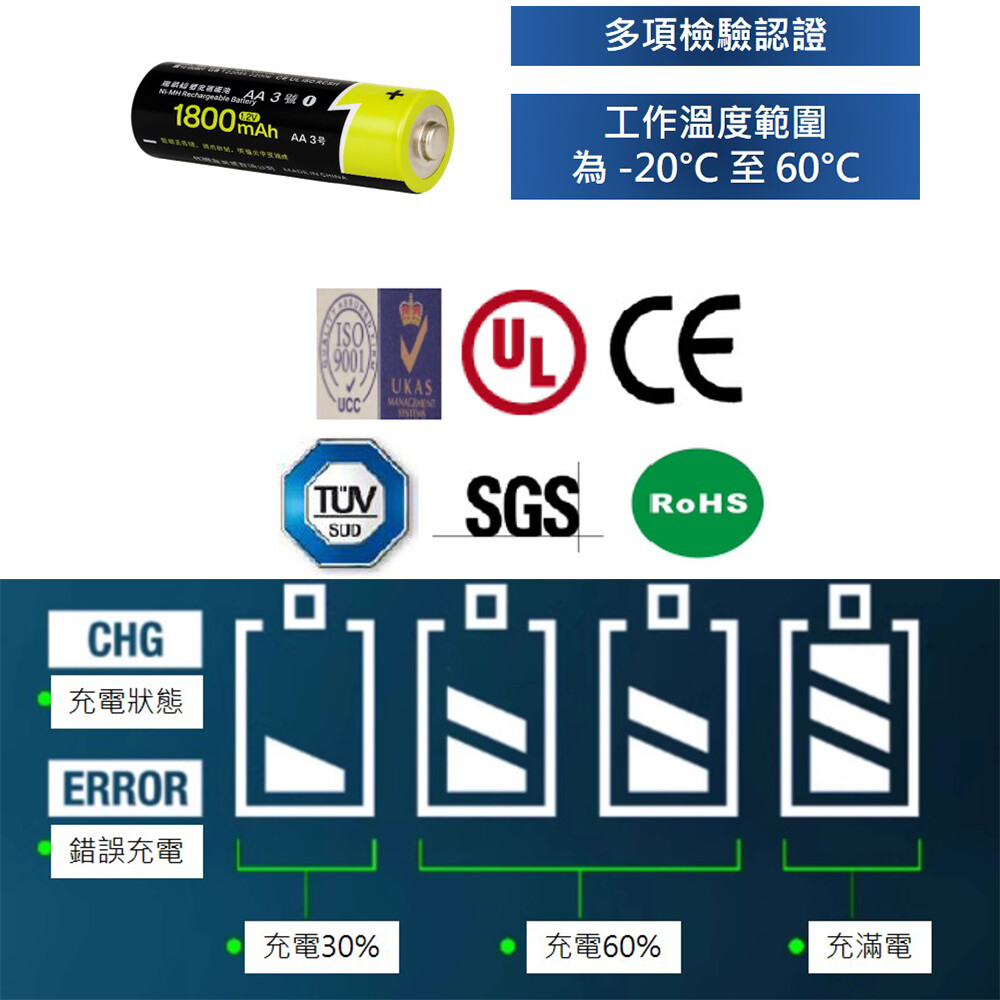 • 配件:充電器*1、TYPE C充電線*1、AA 3號電池*4、電池盒