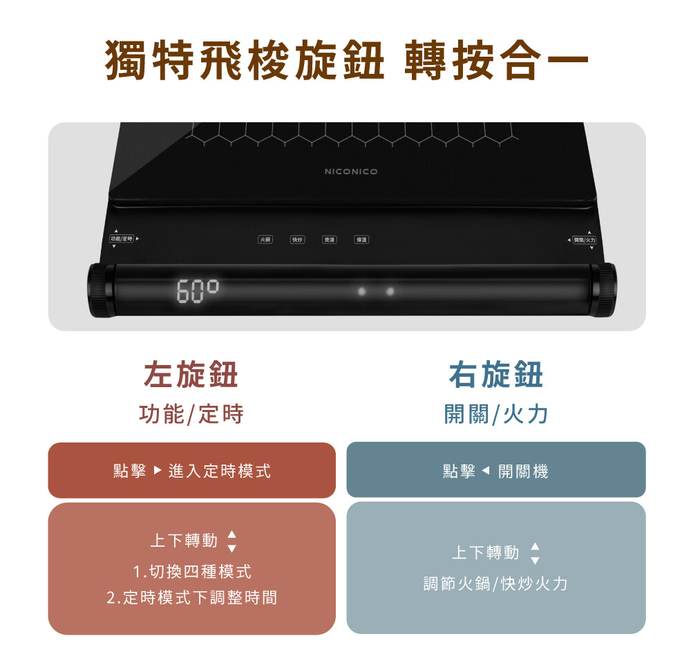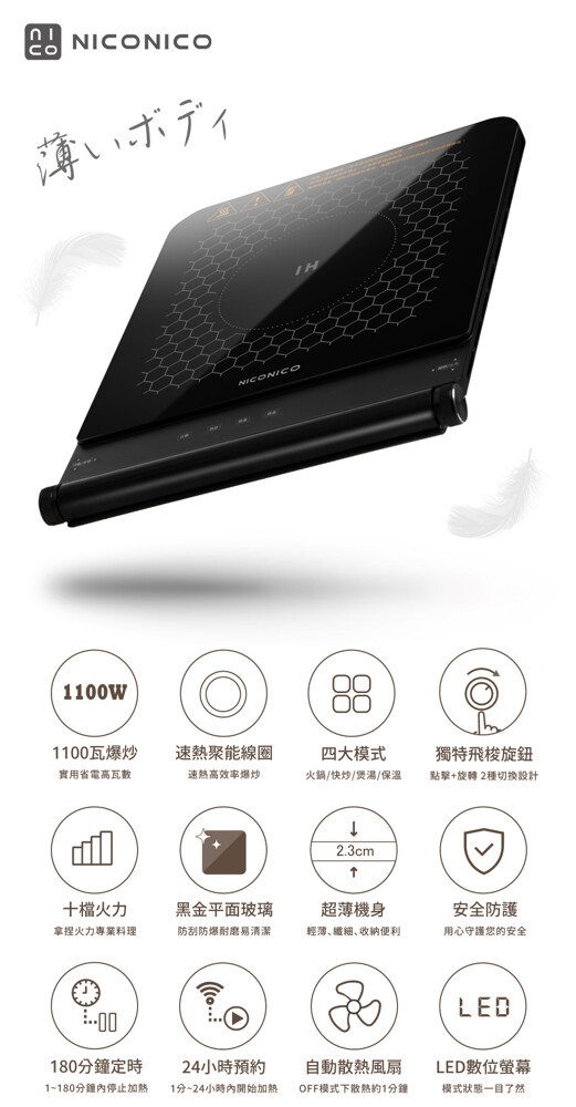 無鍋偵測設計,1分鐘後自動關機