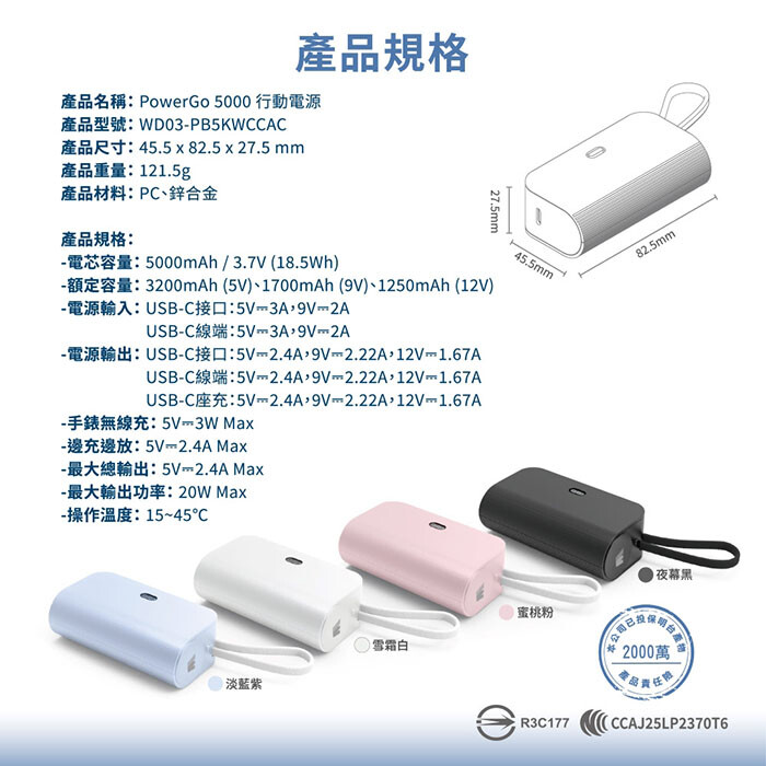 產品名稱:PowerGo 5000 行動電源