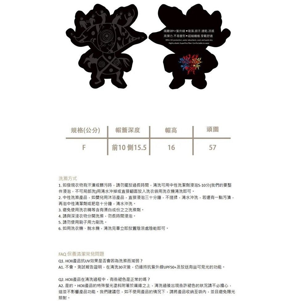 – 規格(公分):帽簷深度前10 側15.5 / 帽高16 / 頭圍57