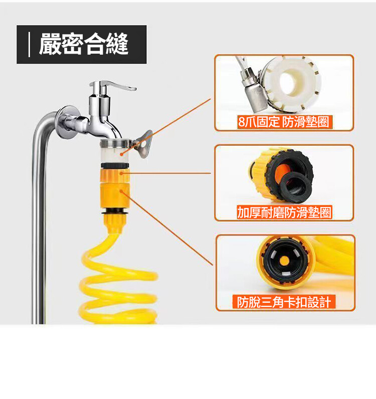 包裝內容物:水管*1+水槍身*1+水槍頭*1+通水配件*4+雙向奶嘴接頭*1(隨機色)