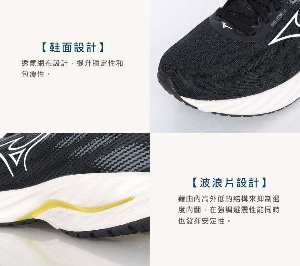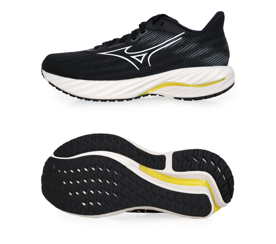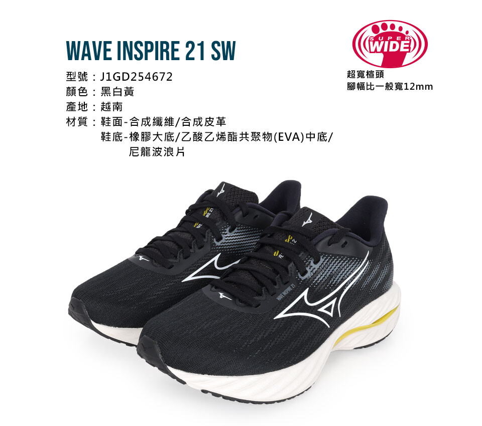 MIZUNO WAVE INSPIRE 21 SW 女慢跑鞋-4E-超寬楦 運動 黑白黃