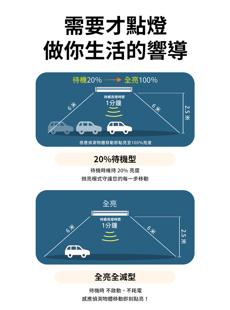 ※安裝多支感應燈管時,距離2米以上,避免感應互相干擾