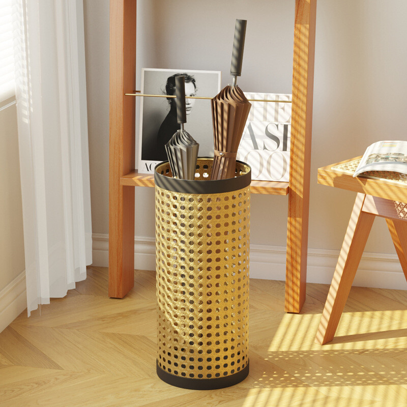 雨傘置物架 雨傘架 民宿 咖啡館 家用 日式仿藤編傘桶 奶油風 雨傘收納架 自帶瀝水托盤 幹濕混用z