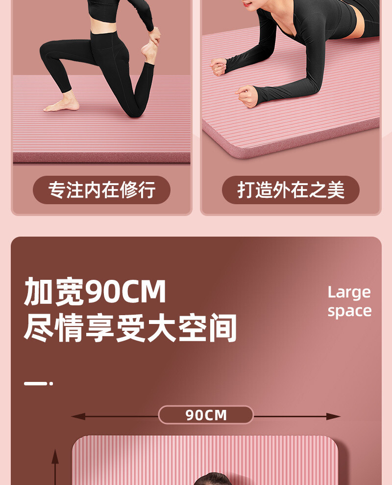 ·材質:高密度NBR ·尺寸:長185cm*寬61cm ·厚度:厚15CM 圖案 條紋 重量 1800g(g) 貨號 NBR瑜伽墊 加寬90CM 盡情享受大空間 加厚15MM 人氣規格\ 蜂窩發泡 強力回彈 科學防滑設計 100條防滑紋路