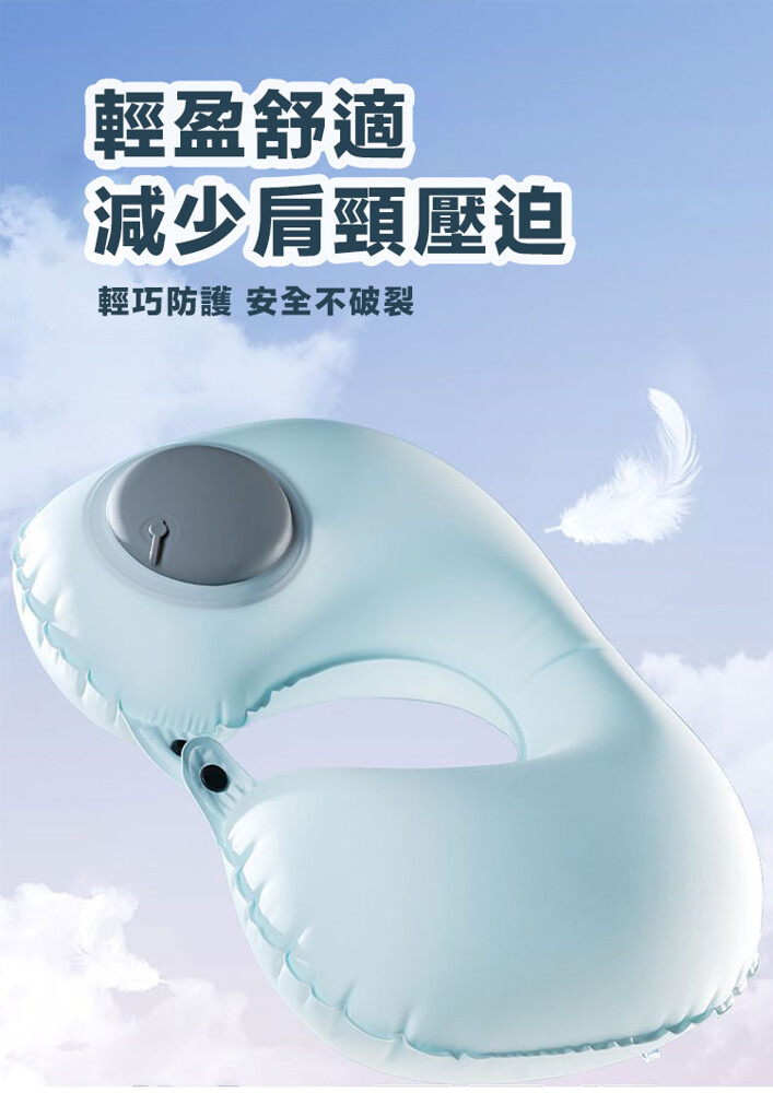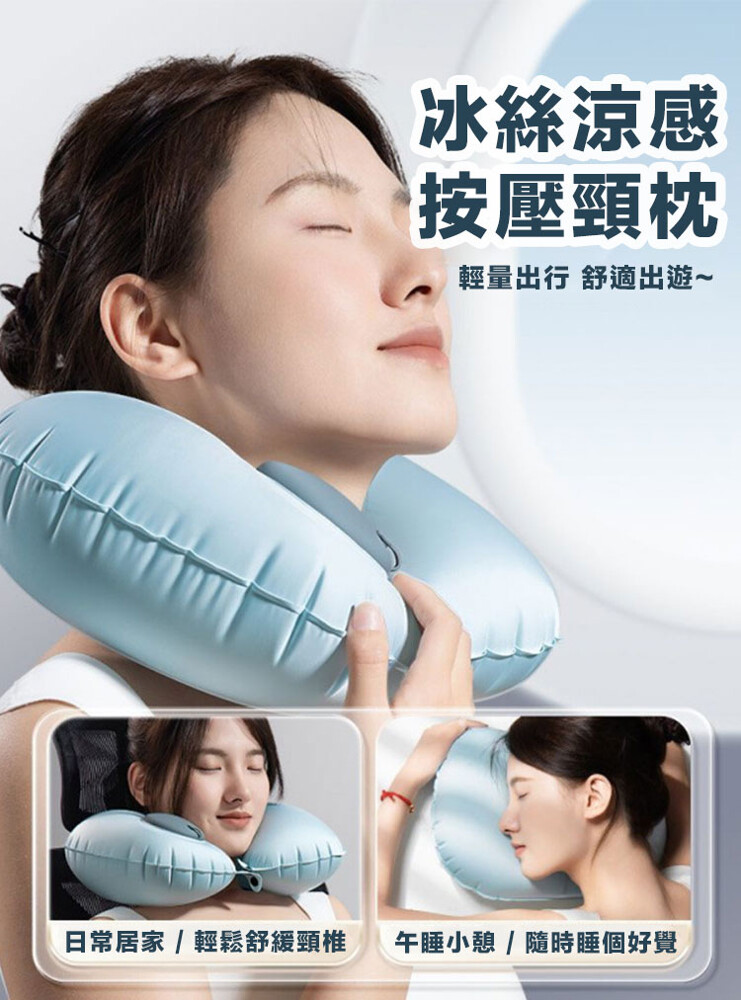 出國必備冰絲涼感按壓頸枕(附收納袋) 充氣u型枕 飛機枕 攜帶方便 午睡枕 頭枕 趴睡枕 遠程旅行