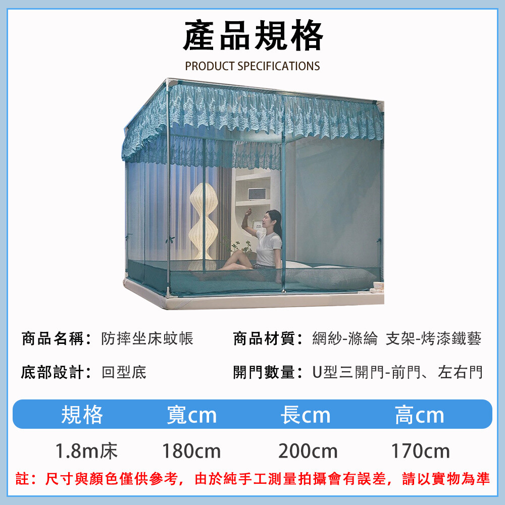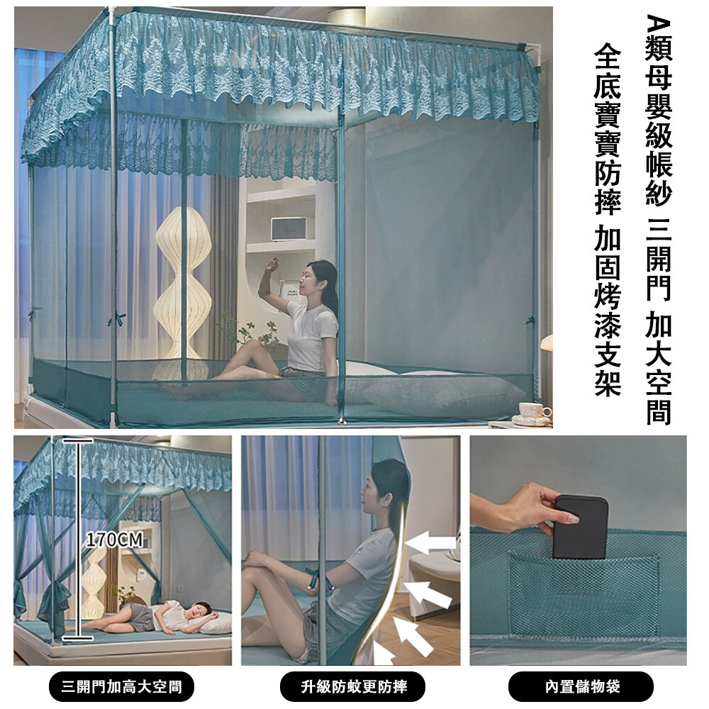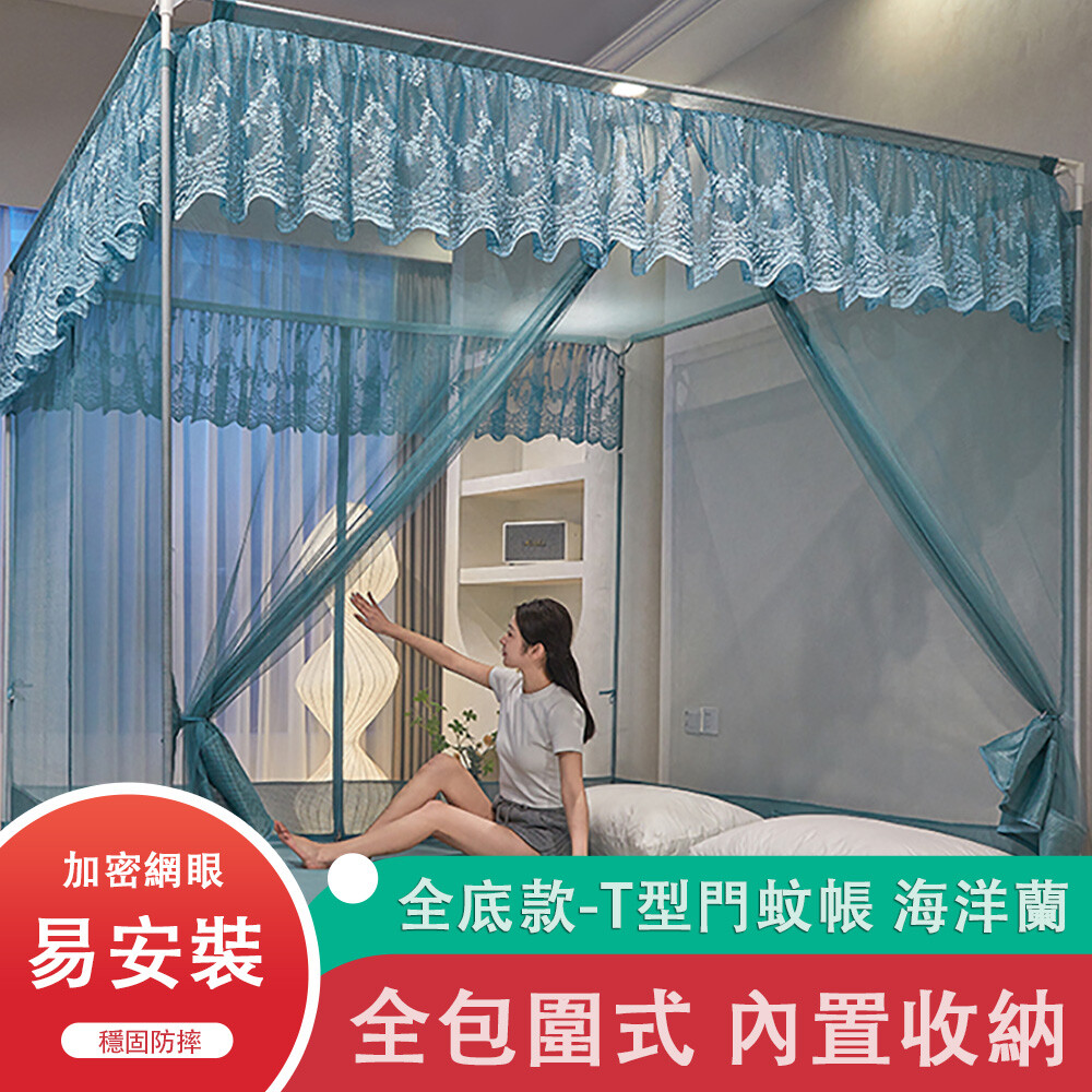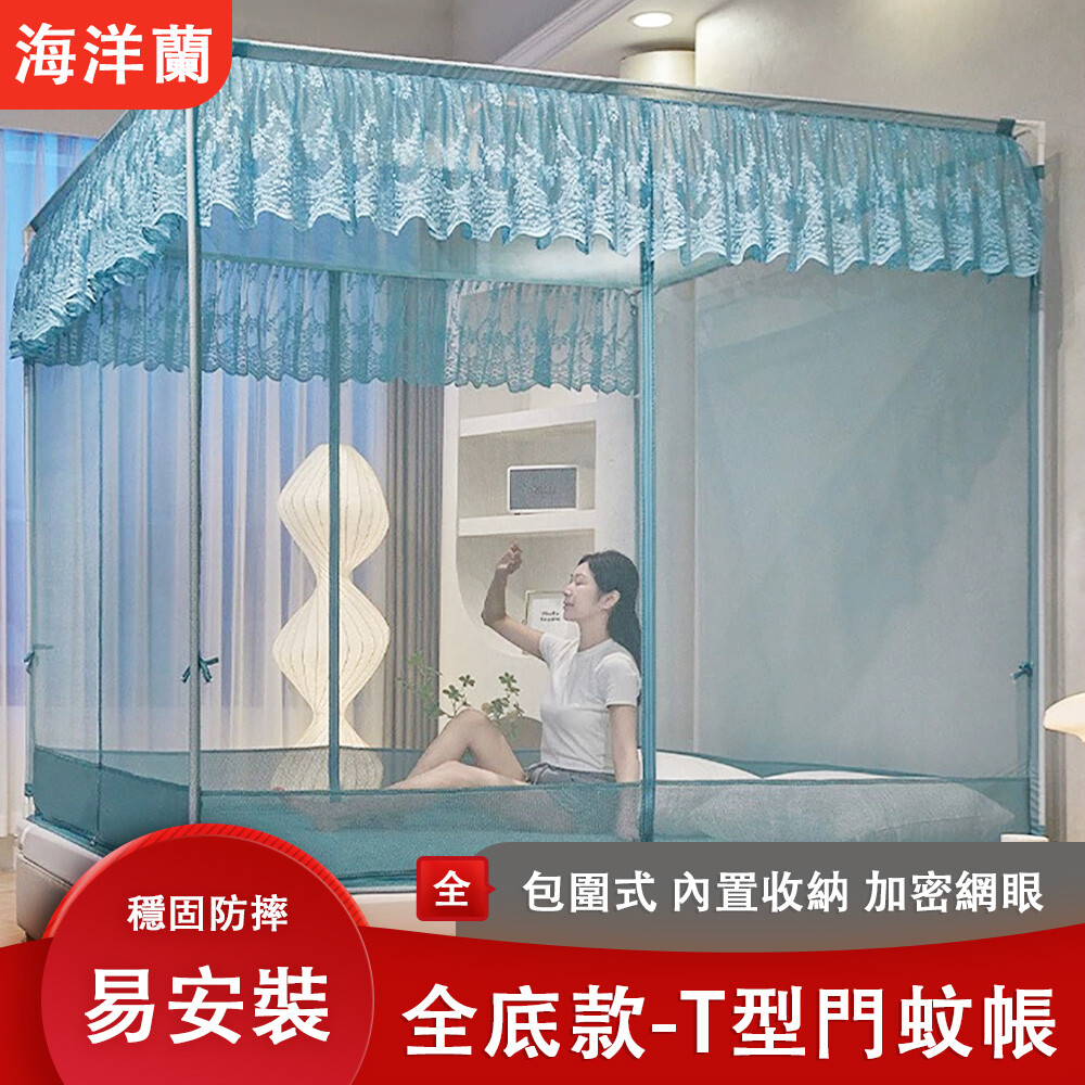 現貨 1.8m全底款T型門蚊帳 加粗加厚三開門蚊帳 蚊幌 紗帳 宮廷蚊帳 加密網紗 防摔雙人蚊帳