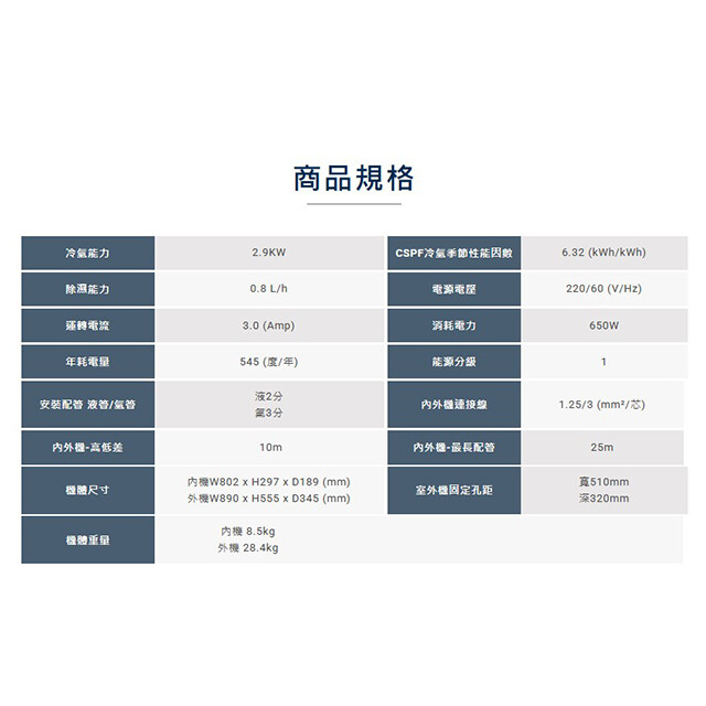 ❁機體重量:內機 8.5kg / 外機 28.4kg
