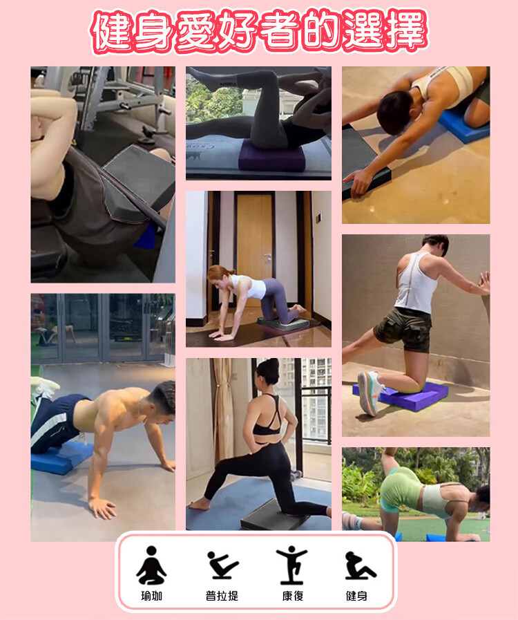 深蹲輔助瑜珈墊:總長約40cm,寬度33cm,厚5cm