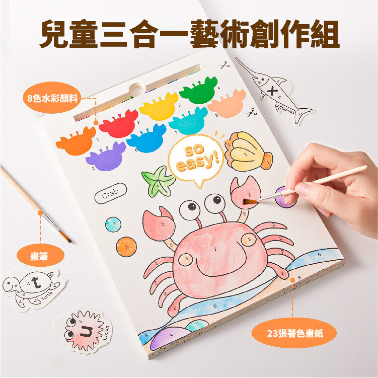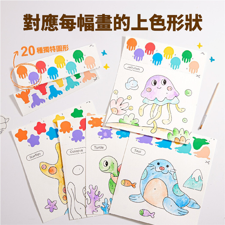 1️⃣ 拿起畫筆 → 2️⃣ 沾水 → 3️⃣ 混合顏料 → 4️⃣ 照著數字上色,簡單又好玩