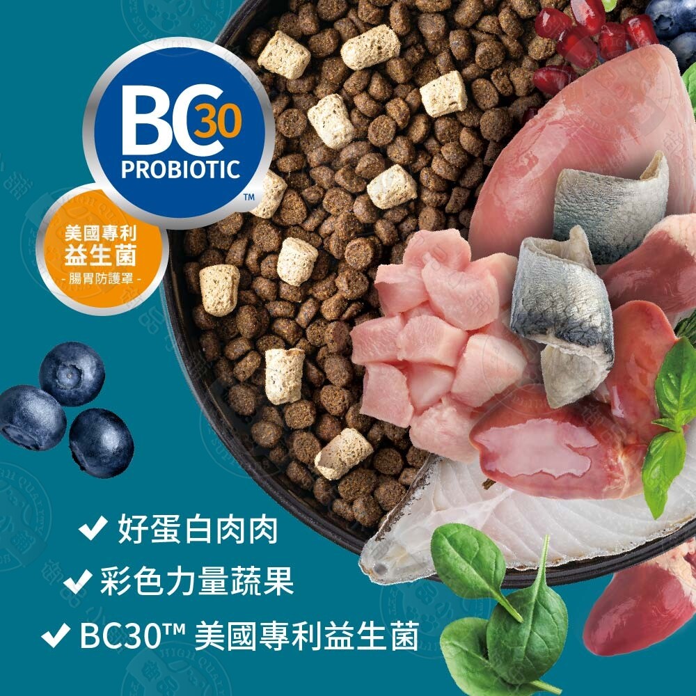 能量乾糧:使用好蛋白優質肉源、添加彩色蔬果與BC30美國專利益生菌 ,幫助建立好腸胃、好肌力、好免疫