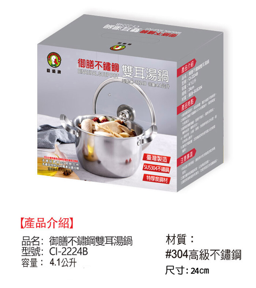 ◆品 名:御膳不鏽鋼雙耳湯鍋